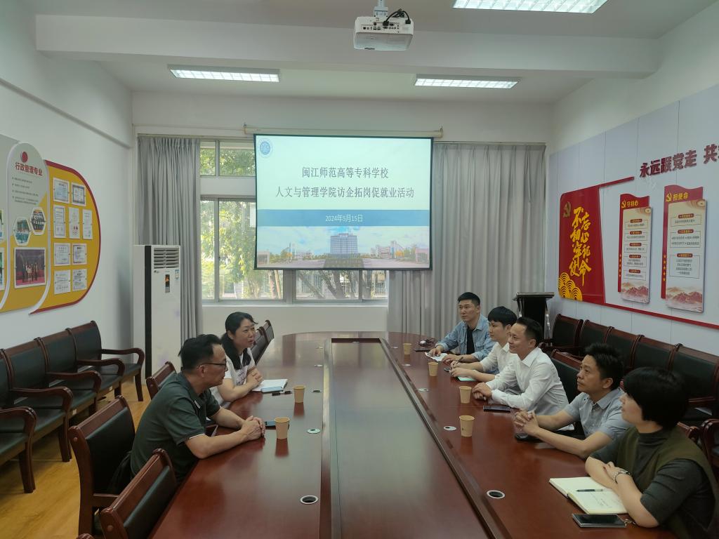 5月15日,我校邀请麦斯特人力资源有限公司、福建省中旻文化旅游发展有限公司、福州名城保护开发有限公司三家对口行业企业的代表来校交流座谈。我校副校长陈强和人文与管理学院相关人员出席了会议。
