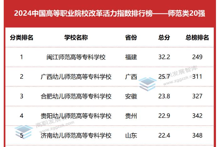 日前,高职发展智库正式发布“2024中国高等职业院校改革活力指数排行榜”(以下简称“活力指数排行榜”)。闽江师范高等专科学校位列师范类全国第一位。