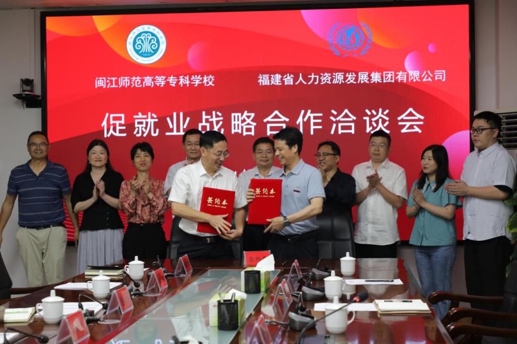 6月12日,我校与福建省人力资源发展集团有限公司在旗山校区举行合作签约仪式。校党委书记林子波、福建省人力资源发展集团有限公司党委书记、董事长郑岩荣出席会议并讲话。校长杨建义和郑岩荣签署合作协议,副校长谢敏峰主持会议。