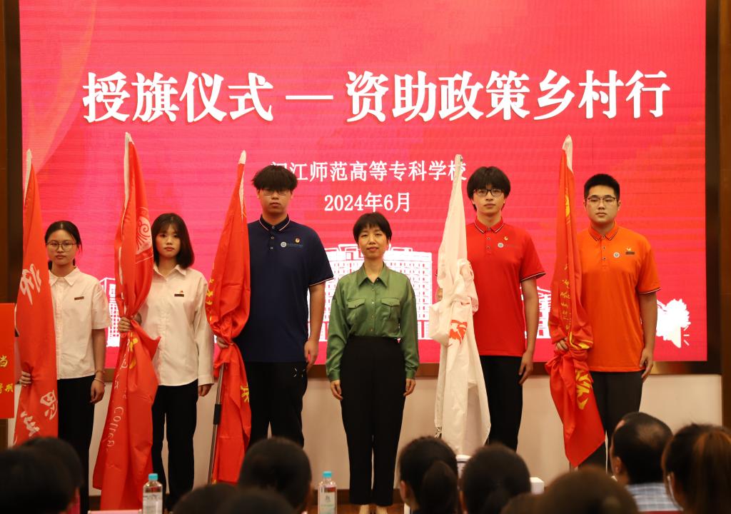 学生处处长郭静静为资助政策乡村行代表队代表授旗