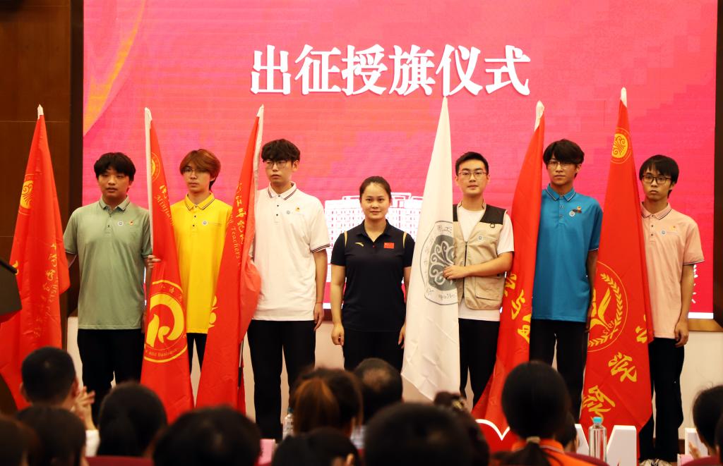 奥运冠军邓薇为我校暑期“三下乡”社会实践队代表授旗