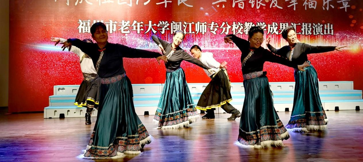 学员们精彩演出,汇报展现福州市老年大学闽江师专分校丰硕的教学成果,充分展现新时代福州老人幸福安康、积极乐观、老有所为、老有所乐的精神风貌和永远跟党走、为祖国繁荣贡献力量的坚定信念和真挚情怀。