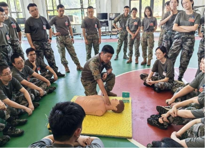 战地医疗救护和急救技能培训,增强了辅导员的服务医疗救护能力。