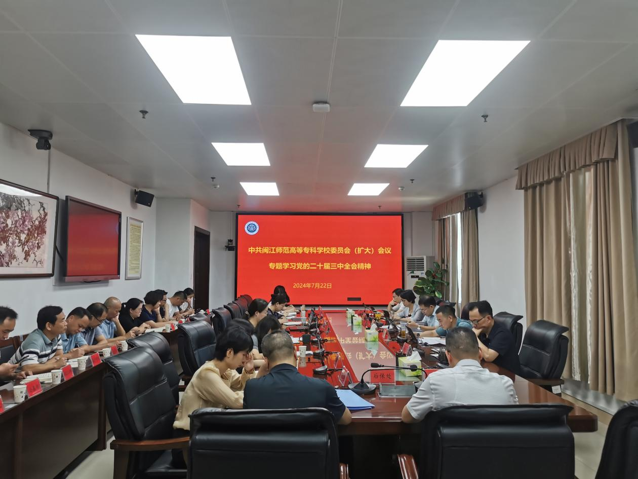 7月19日,校党委书记林子波主持召开党委会会议,第一时间传达学习党的二十届三中全会公报。7月22日,校党委书记林子波主持召开党委会(扩大)会议,再次传达学习党的二十届三中全会精神以及省委常委会、市委常委会(扩大)会议精神,研究我校贯彻落实意见。