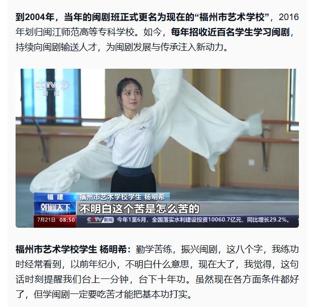 近日,央视新闻频道《朝闻天下》栏目,以《闽剧歌盛世古韵传新声》为题报道了闽剧作为福建地区独特的戏曲艺术,以其独特的韵味,在新时代展现出强劲的生命力。我校持续向闽剧输送人才,为闽剧发展与传承注入新动力,获得央视聚焦和点赞。