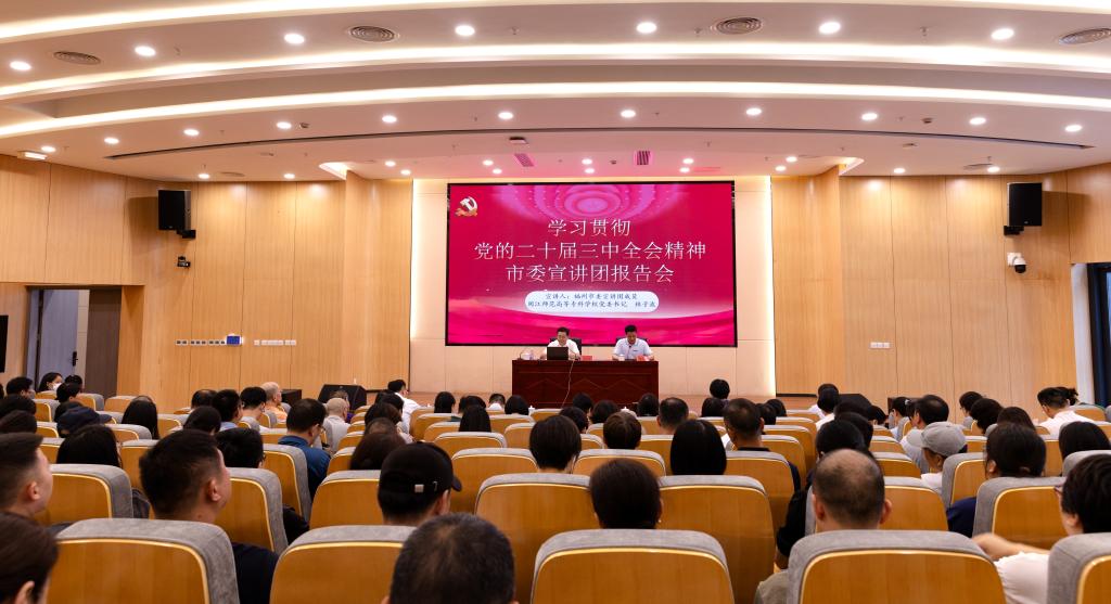 8月30日,学习贯彻党的二十届三中全会精神市委宣讲团在我校图书馆报告厅开展宣讲。市委宣讲团成员,我校党委书记林子波作宣讲报告。报告会由校党委副书记、校长杨建义主持。