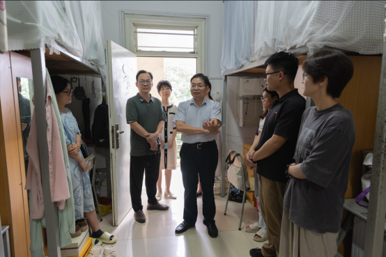 在仓山校区,杨建义、刘翔炜带队实地查看了教学楼、实训室、宿舍楼等区域,仔细检查了教学、实验、消防、生活保障设施设备维护与运行情况,对可能存在的安全隐患提出整改要求。他表示,要强化校园安全管理,加强校园安全风险隐患排查;要对即将到来的台风做好充分准备,深刻认识防汛防台风工作的重要性和紧迫性,确保防汛防台风各项措施落细落实落到位。