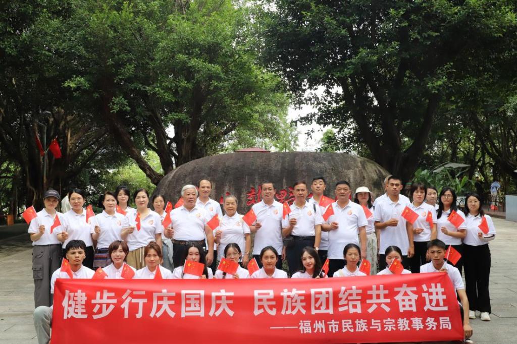 为庆祝中华人民共和国成立75周年,深化爱国主义教育,进一步铸牢中华民族共同体意识,促进民族团结进步,9月29日,我校组织师生代表前往福州福山郊野公园,参加“健步行庆国庆 民族团结共前行”活动。