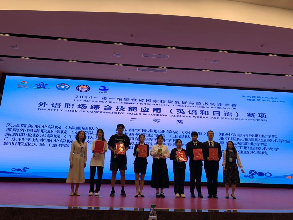 10月26日-27日,2024“一带一路”暨金砖国家技能发展与技术创新大赛外语职场综合技能应用(英语和日语)赛项在黎明职业大学成功举办。我校外语商贸学院尤佳、陈虹老师指导的吴尚垚、郑惠潆、黄梦璐学生团队在全国总决赛中与来自全国各地52个赛队比拼,获得全国二等奖的好成绩。