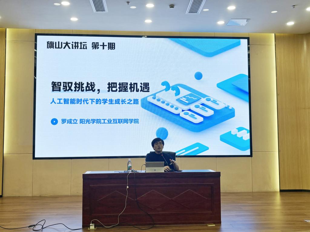 讲座邀请了阳光学院工业互联网学院院长、蒙纳士大学苏州科学技术研究院兼职研究员罗成立教授担任主讲嘉宾。罗成立教授围绕AIGC的使用、AI辅助编程以及AI智能体训练三个核心主题展开讲解,深入浅出地介绍了人工智能作为技术工具如何为学习和工作赋能。
