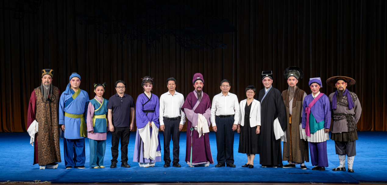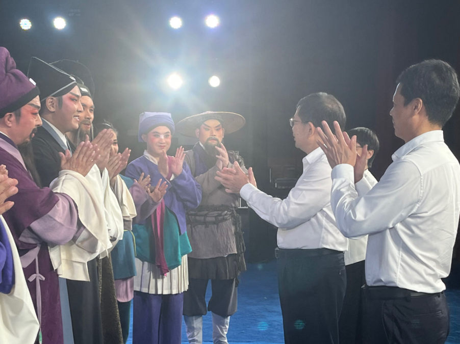 彩排结束后,校领导们上台与参演教师团队亲切交流,对他们的辛勤付出和精彩表演表示高度肯定与赞扬。林子波书记指出,学校一直致力于非遗闽剧艺术的传承与发展,此次《红裙记》能够代表学校及闽剧艺术参加第九届巴黎中国戏曲节,是一次难得的国际文化交流机会,也是展示我校传承非遗闽剧艺术成果的重要舞台。他鼓励老师们珍惜机会,认真准备,出访期间要严格遵守外事纪律规定,以最佳的状态圆满完成出访任务,展示闽剧风采,坚定文化自信,为传承弘扬中华优秀传统文化贡献力量。