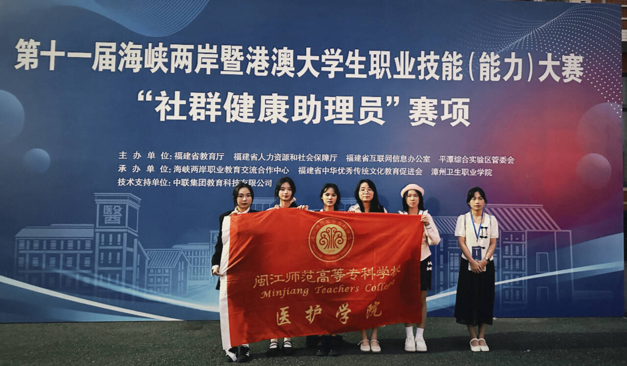 11月3日,由福建省教育厅、省人力资源和社会保障厅、省互联网信息办公室等主办的第十一届海峡两岸暨港澳大学生职业技能大赛“社群健康助理员”赛项在漳州卫生职业学院正式开赛。经过激烈的角逐,我校医护学院佘雪花、陈云燕、李清凤、林敏娜4位老师指导的23级中药学1班的学生徐静莹取得第2名斩获一等奖、23药学1班的学生张宇涵、23中药学1班的学生张滕婷分别以第11名、第12名成绩获得该赛项三等奖。