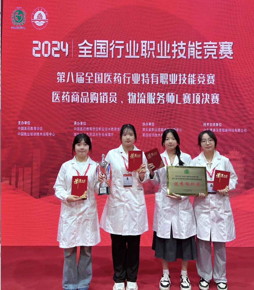 11月08日至11月10日,2024年第八届全国医药行业特有职业技能竞赛“医药商品购销员”“物流服务师L”两个赛项决赛在湖北省长江职业学院举办。经过两天紧张激烈的角逐,我校医护学院佘雪花老师、林敏娜老师指导的22级药学1班的柯莹莹同学、周雅芳同学分别获得医药商品购销员赛项个人一等奖、个人三等奖的优秀成绩,学校获得医药商品购销员赛项团体二等奖,23级药学1班张宝怡、林伊婷分别获得物流服务师L赛项个人三等奖、个人优胜奖的优秀成绩。