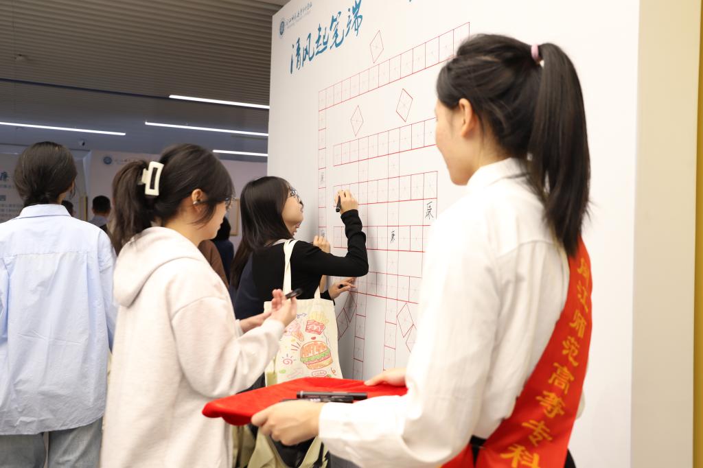 活动现场,在场师生共书“百廉”,将对清风廉洁的美好期许融入到每一个“廉”字的笔画之中。现场师生观摩了由我校师生创作的70余件创意、书法、绘画、手工类廉洁文化作品。作品主题鲜明,别具“闽师专业特色”,既有诗词歌赋、名文佳句、水墨绘画、传统漆画,也有精美剪纸、服装设计、手工作品、三笔字、装饰画。每一幅作品都饱含着师生对廉洁文化的独特理解和思想认同,展现了“廉与美”的完美邂逅,具有很强的思想性、艺术性、观赏性。