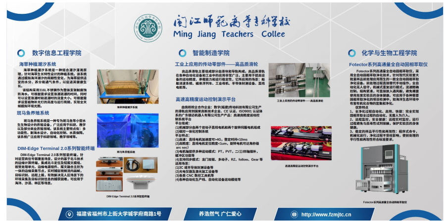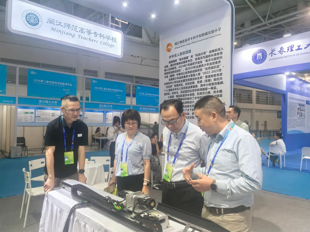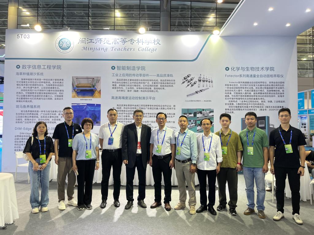 6项科技创新成果包括发明专利、仪器设备和装置等,分别是数字信息工程学院研发的“海草种植潮汐系统”“斑马鱼养殖系统”“DIM-Edge Terminal 2.0系列智能终端”,化学生物工程学院的福建省科技项目成果“Fotector系列高通量全自动固相萃取仪”,智能制造学院和企业共同研发的数字工业上应用的传动零部件“高品质滑轨”和“高速高精度运动控制演示平台”等成果。在展览会上,我校还通过图片、视频、模型等多种形式,展示学校服务国家战略,服务区域社会经济的各方面成果。本届海装展福建省仅有三所高职院校参与,我校为其中之一。