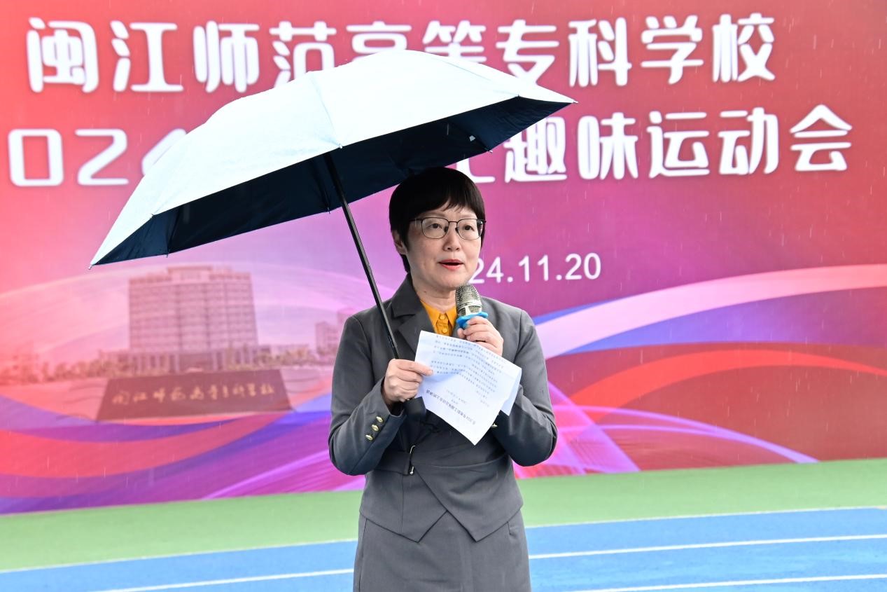 校党委委员、副校长江柳青在致辞中指出,趣味运动会不仅能增强各二级工会团队凝聚力,也是对闽师人精神风貌和综合素质的一次全面检阅,她勉励全体运动员顽强拼搏、奋勇争先,赛出风格、赛出水平。随后校工会常务副主席叶华宣布趣味运动会开幕。