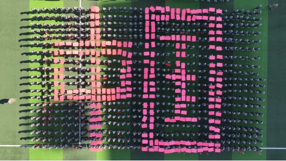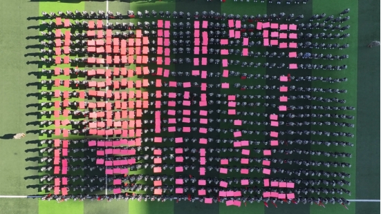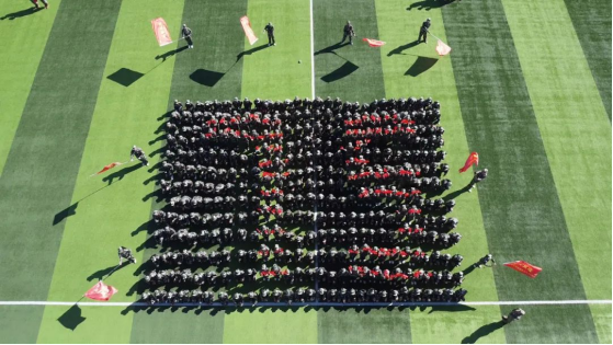 在会操表演后,2024级新生进行了新中国成立75周年数字队形展示,为祖国献上自己的祝福。