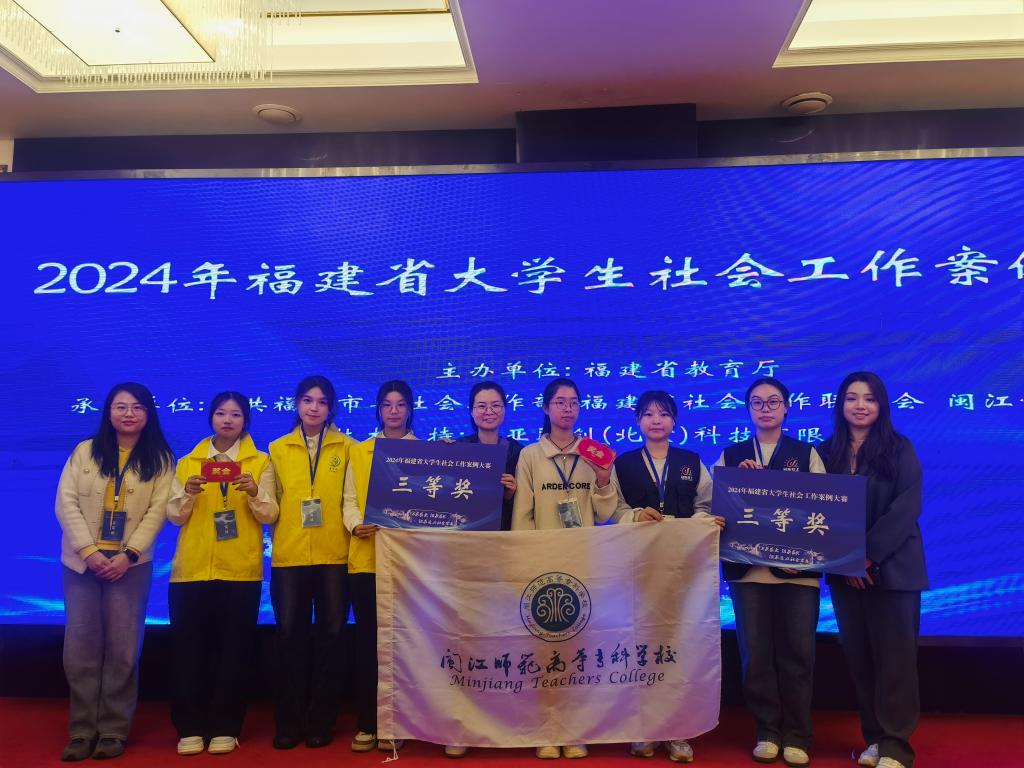 12月7日,由福建省教育厅主办的2024年福建省大学生社会工作案例大赛在闽江学院举办。我校社会工作专业选送4支队伍参赛,最终2支队伍荣获三等奖。