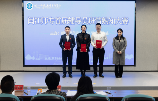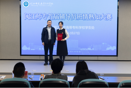 为不断提升辅导员理论素养、职业能力和专业水平,12月27日,我校首届辅导员班情熟知大赛在图书馆五楼报告厅举行。学校党委委员、副书记谢敏峰出席并致辞,特邀福建师范大学音乐学院党委副书记杜成煜、学生处处长郭静静、纪检监察审计室邱信洁副主任、宣传统战部副部长陈晓凡担任专家评委。全体专职辅导员、各学院学工负责人到现场观摩。