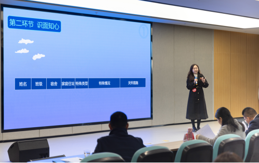 共有9名辅导员进入本次大赛决赛。大赛通过现场答题形式进行,包括识影知人、识面知心、识班领航三个环节,系统随机抽取辅导员所带学生的8名学生照片,要求参赛辅导员根据照片精准答出学生姓名、专业、学业、宿舍楼宇等情况,以此考察辅导员对所带班级的了解与熟知程度,反映辅导员日常工作深入学生情况。