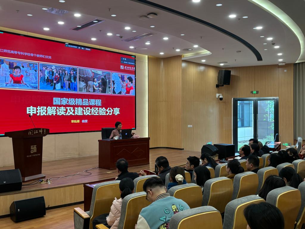 12月31日,我校邀请国家“万人计划”教学名师、全国优秀教师、温州职业技术学院设计学院院长章瓯雁教授开展了《国家级精品课程申报解读及建设经验分享》专题讲座。讲座采取线下授课及线上视频直播同步进行,副校长陈强,各二级学院院长、教师代表、心理健康教育国家资源库团队成员等150余人参加。讲座由教务处处长葛思华主持。