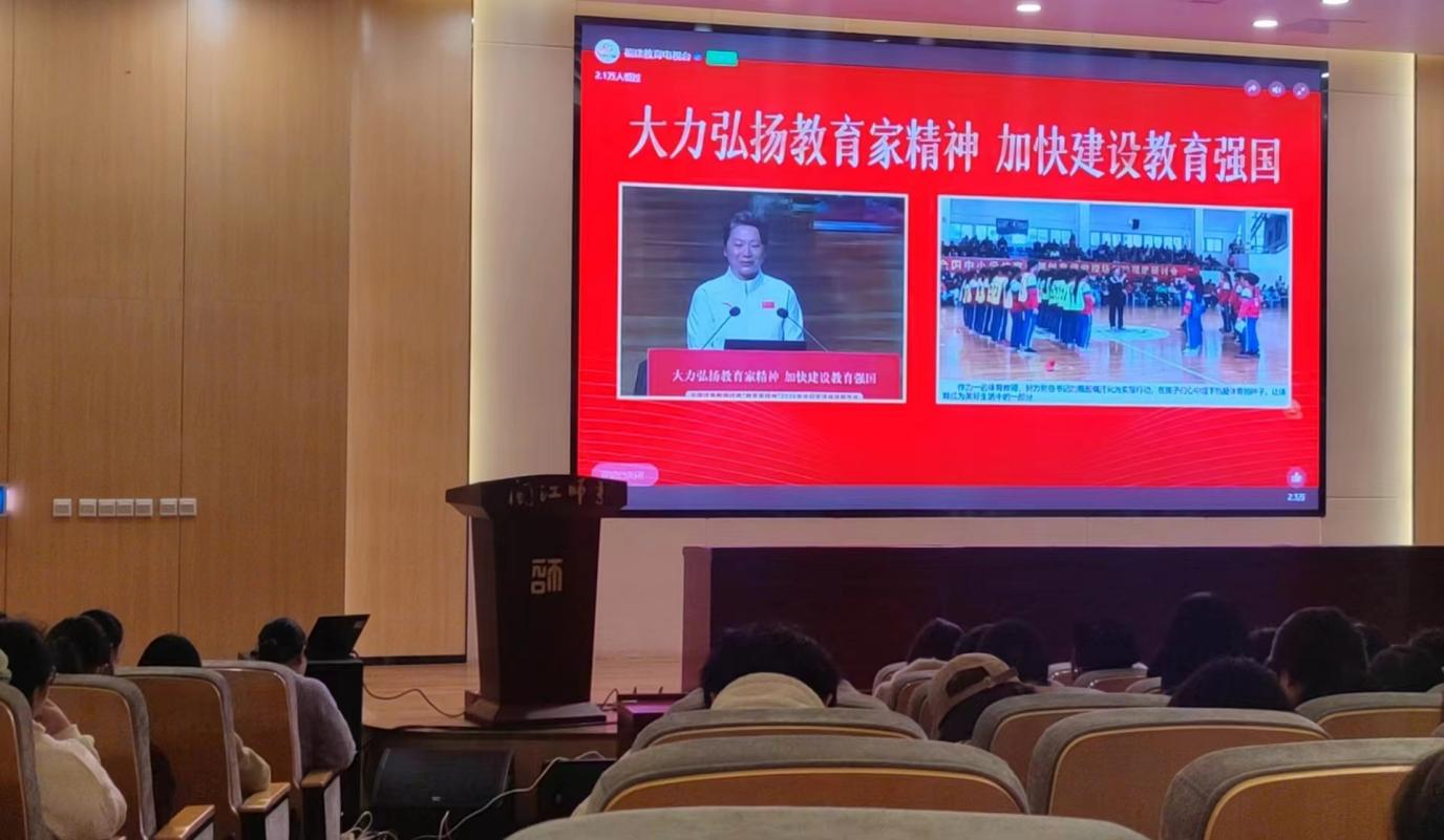 2月28日,我校在旗山校区图书馆一楼报告厅设立分会场,副校长刘翔炜,各部门、学院分管教师工作负责人,教师代表,师范生代表,人事处(教师工作部)全体成员集中观看了教育部组织开展的“教育家精神”2025年巡回宣讲报告会线上直播。