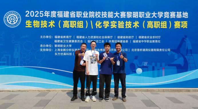 3月24-26日,2025年度福建省职业院校技能大赛(高职组)“生物技术”赛项于在黎明职业大学举行。我校化学与生物技术学院学生赖凯文、王奕晖在张文敏、石百铮两位老师的悉心指导下荣获团体三等奖。