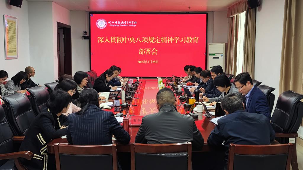 3月28日下午,我校党委召开党委会(扩大)会议,传达学习习近平总书记关于深入贯彻中央八项规定精神学习教育的重要讲话和重要指示精神,学习贯彻中央党的建设工作领导小组会议和省委、市委党的建设工作领导小组会议关于开展深入贯彻中央八项规定精神学习教育的部署精神,研究审议学校开展深入贯彻中央八项规定精神学习教育工作方案,部署学校深入贯彻中央八项规定精神学习教育工作。校党委书记林子波主持会议并讲话。全体校领导、学校党的建设工作领导小组成员出席会议,各部门负责人、二级党组织书记列席会议。