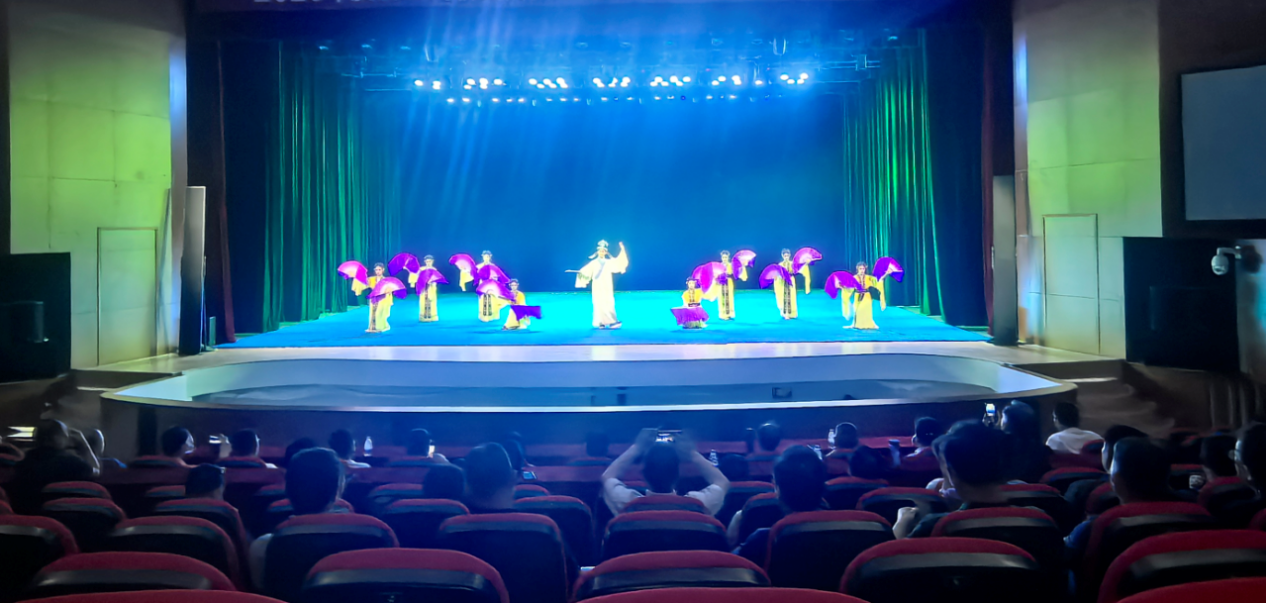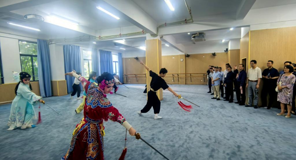 学员们参观了闽剧艺术展示馆。馆内珍贵的图文资料、丰富的实物展品,全方位呈现学校牢记嘱托、笃定前行,在闽剧艺术传承发展方面取得的丰硕成果。在深入闽剧教学一线,学员们观看了闽剧唱腔、基训、把子及剧目课堂教学情况,老师们的悉心指导及学子们的勤学苦练给大家留下了深刻的印象。现场闽剧《天鹅宴·算命》及《戏韵》的表演赢得了学员们的阵阵掌声。