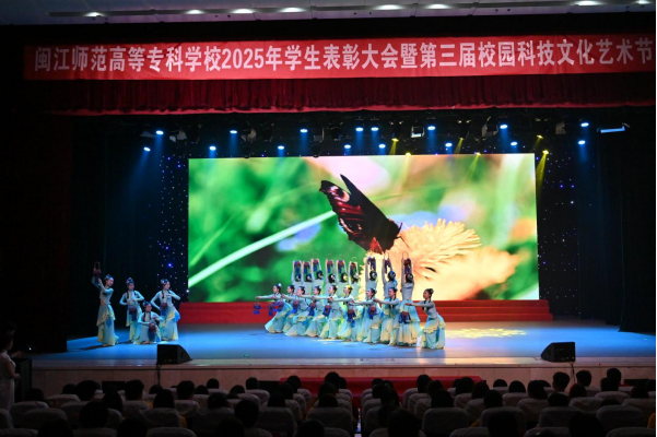 与会校领导为受表彰集体和个人代表颁奖。全场团员青年重温了入团誓词,青年学生以青春之姿倾情演唱了原创校园歌曲《青春闽师》、表演了舞蹈《茶尖尖蝶翩翩》、合唱了《有我》等节目,展现了闽江师专学子昂扬向上的精神风貌。大会在全场齐唱团歌《光荣啊,中国共青团》中圆满落幕。