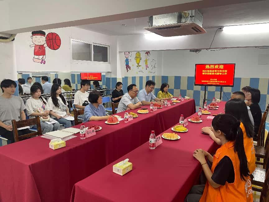在福州市爱心托管机构,负责人喻华斌带领调研团队参观了教学场地与活动空间,并重点介绍了机构在儿童教育、社区服务等领域的岗位需求。座谈会上,我校2023届小学教育专业毕业生蔡艺梅、2025届物联网应用技术毕业生苏华清作为优秀校友代表,分享了从实习到就业的成长经历。陈强表示,学校将结合企业用人需求优化课程设置,并提议与机构共建“实习就业一体化基地”,定向输送优质毕业生。双方还围绕公益行业职业发展前景、岗位技能培训等展开深度交流。