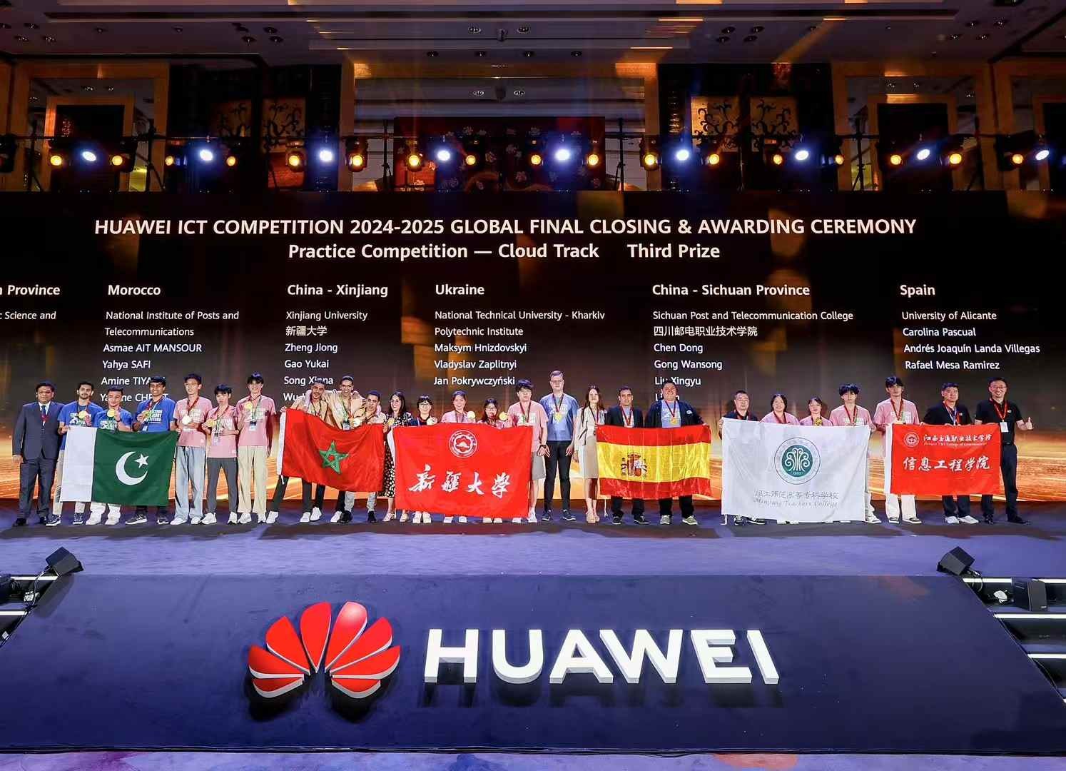 5月24日,第九届华为ICT大赛全球总决赛闭幕式暨颁奖典礼在深圳举行,由我校数字信息工程学院李翔宇老师指导,大数据技术专业学生黄荣海、李晓彤、张慧玲组成的闽江师范高等专科学校代表队在比赛中表现卓越,获得实践赛云赛道全球三等奖,实现我校在该赛事全球奖项“零”的突破。