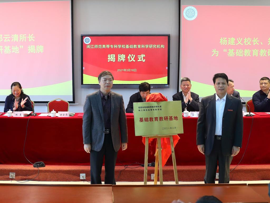 闽江师专校长杨建义、省普教研究室主任郑云清为基础教育教研基地揭牌