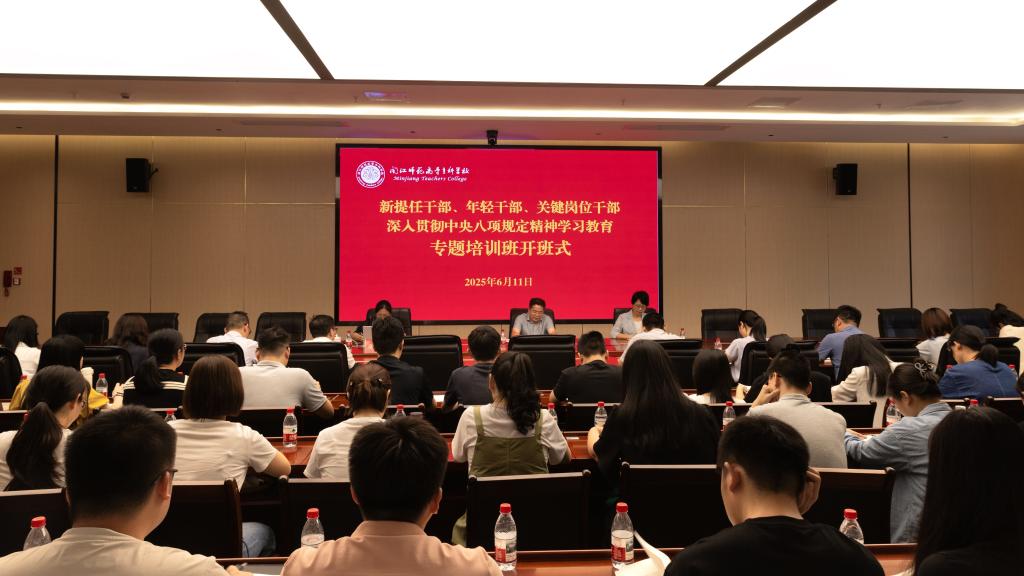 6月11日下午,我校新提任干部、年轻干部、关键岗位干部深入贯彻中央八项规定精神学习教育专题培训班开班在旗山校区开班。校党委书记林子波出席开班仪式并讲话,开班仪式由校党委委员、纪委书记陈群主持。