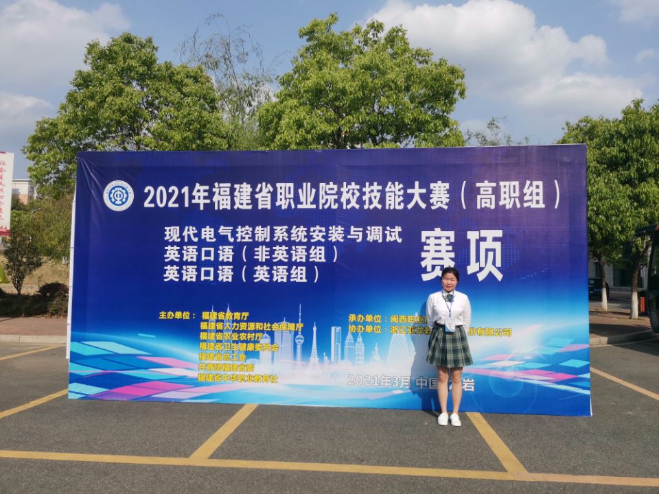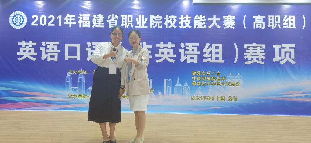 3月27日至28日,在闽西职业技术学院举行的福建省职业院校技能大赛(高职组)英语口语赛项中,我校外语系英语口语竞赛团队经过三轮奋战,取得优异成绩,林超老师指导的王彩虹同学获得专业组一等奖,程妍老师指导的黄清婷同学获得非专业组二等奖。