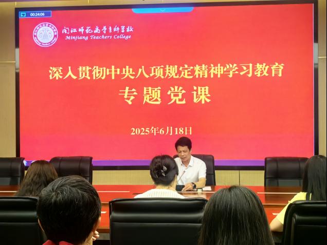 6月18日,我校党委副书记、校长杨建义以“中央八项规定:破解大党独有难题的路径切口”为题,为党政办公室党支部和马克思主义学院党总支全体党员干部精心讲授了一堂内容详实、意义深远的专题党课。