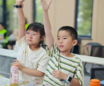 海姆立克急救法:志愿者们用“剪刀石头布定位法”化解难点。孩子们通过模型演示和两两角色扮演,快速掌握动作要领,并通过互动问答纠正了“噎住拍背”等常见误区,熟记“一找肚脐上,二握拳头放,三包用力冲,异物跑光光”的口诀。