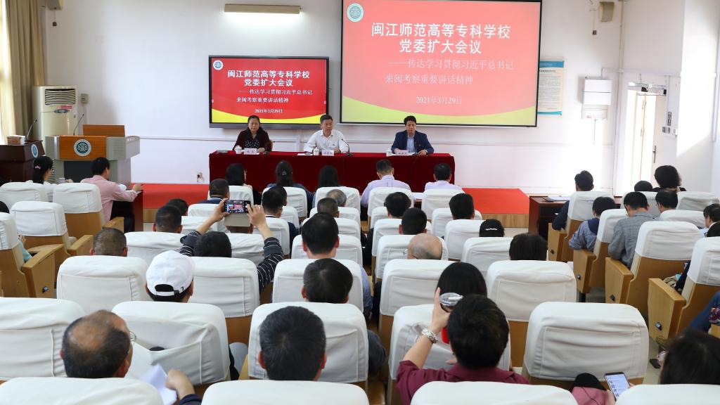 3月29日,我校党委召开扩大会议,传达学习贯彻习近平总书记来闽考察重要讲话精神及省委常委会扩大会议、市委常委会扩大会议、全省领导干部大会、全市领导干部大会精神,部署学校学习宣传贯彻意见。全体校领导、副科级以上干部及附属单位主要负责人参加会议。会议由校党委副书记、校长杨建义主持。