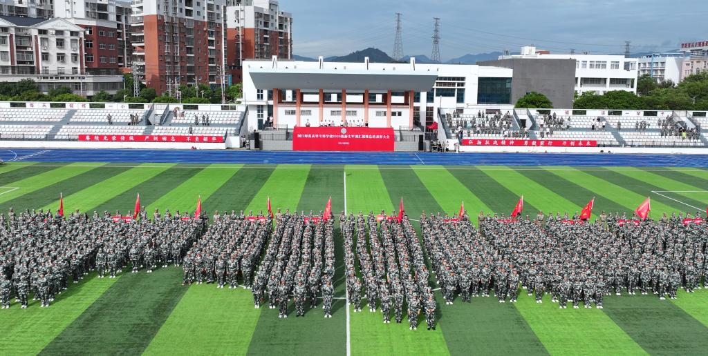 大会在庄严的国歌声中拉开序幕,党委书记林子波、校长杨建义以及党委副书记谢敏峰分别在三个校区代表学校向圆满完成军训任务的同学们表示热烈的祝贺,向辛勤带训的全体教官表示衷心的感谢,并对全体新生提出四点希望:一要信有所立,把理想刻进青春。希望同学们把个人成长融入国家发展,把职业追求对接社会需要。二要心有所敬,把规矩融入日常。希望同学们把军训中养成的严谨作风,转化为日常行为的自觉遵循,让守纪律、讲规矩成为一种修养。三要行有所向,把集体装在心中。希望同学们继续发扬团结精神,学会换位思考,主动关心他人,将个人命运融入国家命运,努力拼搏。四要志有所恒,把坚持化为习惯。希望同学们把军训中磨砺出的那股韧劲带到今后每一天:坚持早起、坚持阅读、坚持锻炼、坚持反思,把坚持变成习惯。