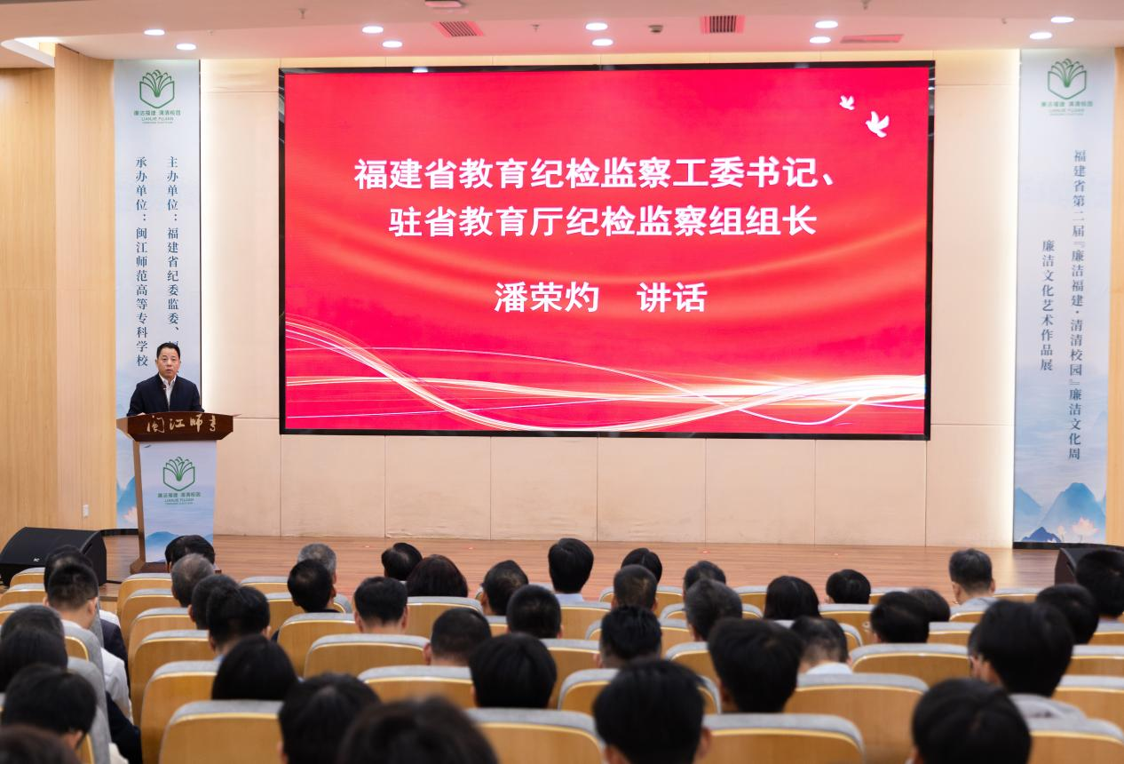 10月23日,由福建省纪委监委、福建省委教育工委主办,我校承办的第二届福建省校园廉洁文化周“廉洁福建·清清校园”文化艺术作品展在旗山校区举行。福建省纪委副书记、省监委副主任陈铁晗,福州市委常委、市纪委书记、市监委主任傅藏荣,福建省教育纪检监察工委书记、驻省教育厅纪检监察组组长潘荣灼,我校校长杨建义出席活动。开展启动仪式由校纪委书记陈群主持。