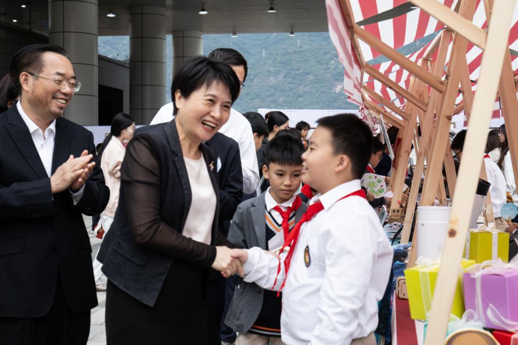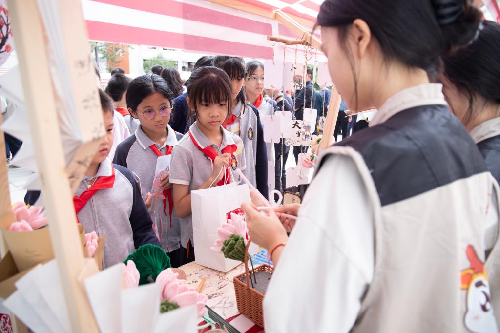 我校还创新搭建“大中小学”思政课一体化实践平台,精心设置了“青春担当・廉行校园”廉洁主题创意市集打卡体验区。活动现场,省市领导嘉宾与青年大学生及我校附小附幼学生亲切互动。