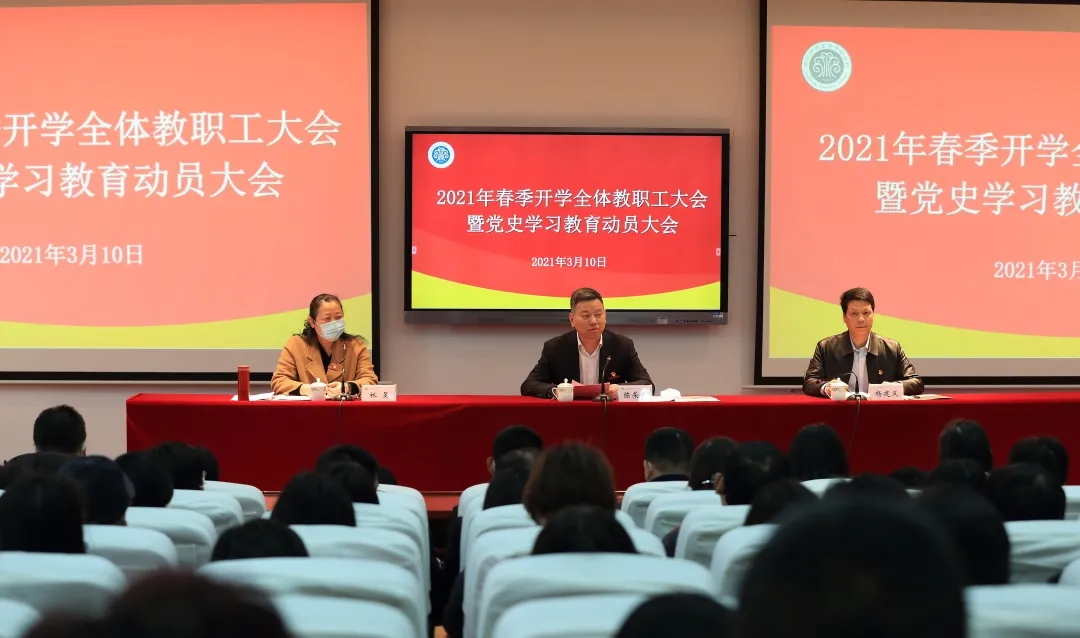 3月10日,学校召开党史学习教育动员部署会,就深入学习贯彻习近平总书记在党史学习教育动员大会上的重要讲话精神,结合学校实际,高标准高质量完成党史学习教育各项任务,进行动员部署。校党委书记陈荣生作动员部署讲话。