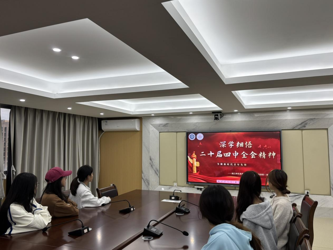 学习过程中,我校各级团学组织结合青年群体特点与工作实际,通过领学研读、观看新闻、交流研讨等多种形式深入领会全会关于坚持和完善中国特色社会主义制度、推进国家治理体系和治理能力现代化的重大部署,重点学习了全会对青年发展、文化建设、社会治理等领域提出的明确要求。参与学习的师生一致表示,将切实把全会精神转化为服务国家发展的思想自觉、政治自觉与青春实践,以实际行动响应时代号召。