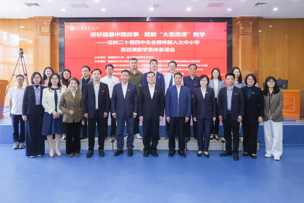 11月14日,“讲好健康中国故事 赋能‘大思政课’教学——党的二十届四中全会精神融入大中小学思政课教学”集体备课会在福建医科大学旗山校区召开,我校作为联合主办单位之一,校长杨建义带队参会,宁夏医科大学、省内多所院校的近百名专家学者及教师代表参加。会议由福建医科大学马克思主义学院院长吴任慰主持。
