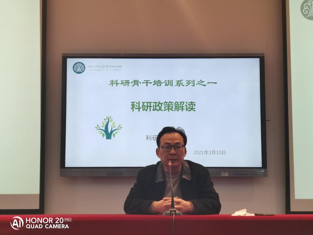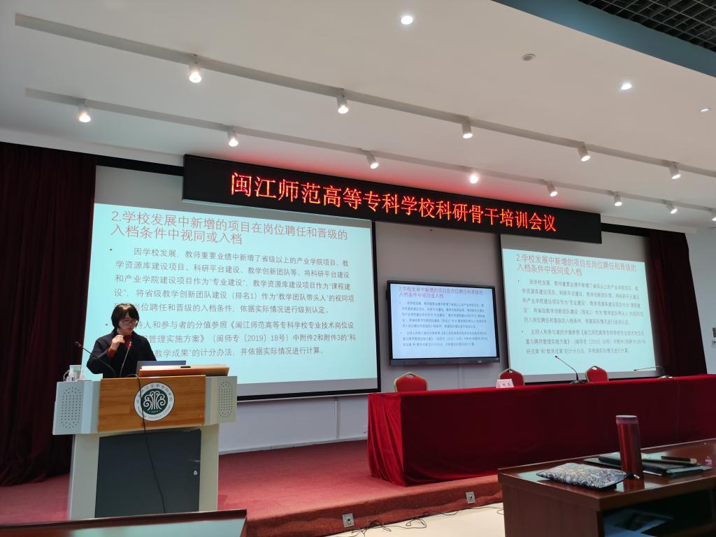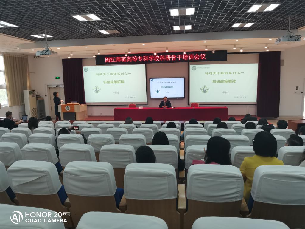 3月10日,科研处举办闽江师范高等专科学校科研骨干培训会议,林旻副校长出席会议,会议由科研处陈强处长主持,系部主任、科研秘书及在研课题负责人参加。
