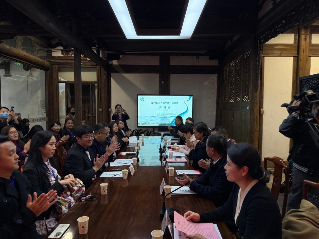 齐志在致辞中向远道而来的各位校长表示热烈欢迎。她强调,华文教育是海外华侨华人传承文化、维系根源的“留根工程”。福建作为著名侨乡,始终将支持海外华文教育视为重要责任。她指出,校长是学校的灵魂与掌舵者,其理念与视野直接关系到华文教育的质量与未来。本次研修班是推动华文教育提质增效的重要实践。她表示,福建省侨联将继续发挥桥梁作用,全力支持海外华文教育事业发展,为促进文明交流互鉴贡献积极力量。