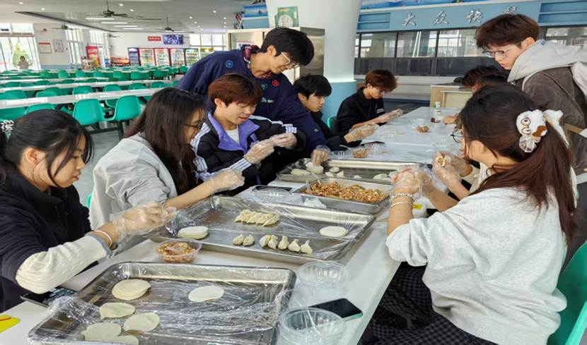 活动中,师生共同动手,捏皮、放馅、捏合,薄面皮化作形状各异的饺子和汤圆摆满托盘。每枚饺子和汤圆都承载心意与创意,同学们在实践中体悟劳动的意义、合作的快乐与分享的温暖。饺子、汤圆煮好后,同学们有序品尝劳动成果,脸上洋溢着满足的喜悦。学生干部还化身“温暖传递者”,将热气腾腾的餐食送至宿舍楼,暖胃更暖心。