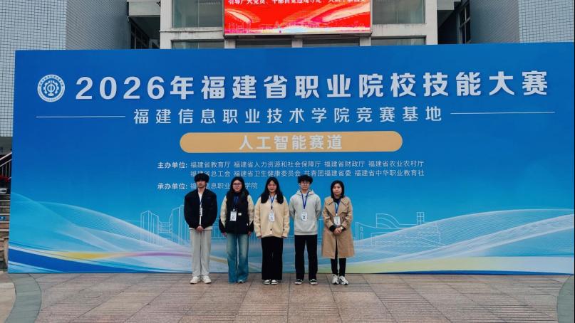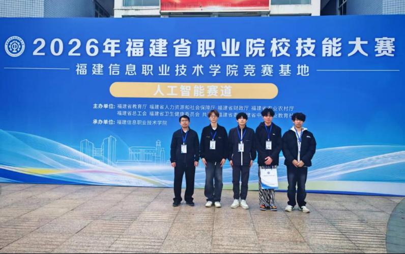 12月18日至22日,由福建省教育厅主办的2026年福建省职业院校技能大赛(高职组)“人工智能”赛道顺利开展。由我校物联网应用技术专业教师尹小俊、叶宁指导的学生郑礼晟、谢栩翰、江楠、赵贤阳参赛团队,以及现代教育技术专业教师王凤姣、陈美霞指导的庄惠钦、王宇昕、詹文杰、钟贤聪参赛团队,凭借扎实的专业技能、高效的团队协作能力以及优良的综合素养,分别荣获该赛道金奖与银奖。