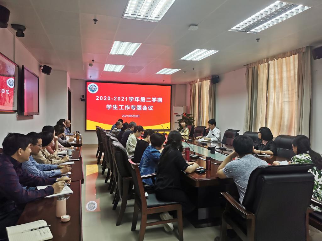 5月6日上午,我校在综合楼九楼会议室召开2020-2021学年第二学期学生工作专题会议。党委副书记、校长杨建义、保卫处处长方斌、各系学生工作负责人以及学生处全体成员参加会议。会议由学生处处长张信容主持。
