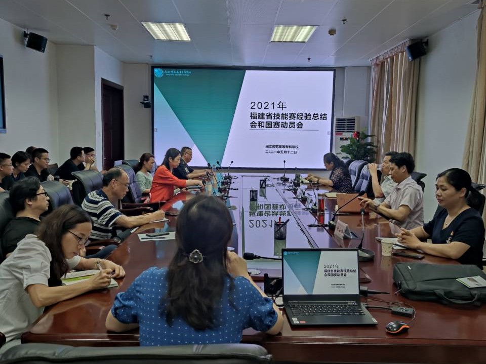 葛思华就我校2021年福建省职业技能大赛情况进行总结分析。谢茹胜从如何选拔学生、提高学生知识储备、备赛准备、比赛过程细节的把握以及赛事成果转换等五个方面进行了经验交流与分享。艺术系副主任徐青、机电工程系主任李扬新就国赛备战情况及省赛中存在问题进行剖析,并制定了2021年国赛目标。